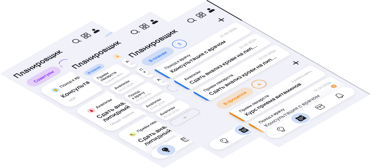 - Планирование новых необходимых мероприятий (визиты к врачу, чекапы).